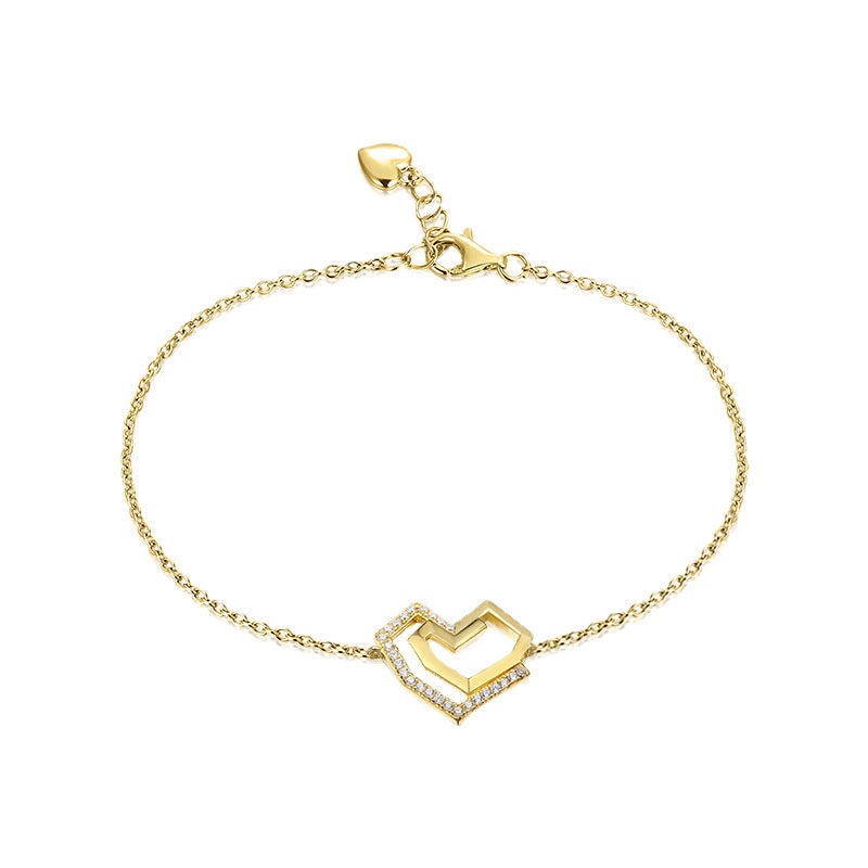 This Rotating Heart with Zircon Silver Bracelet for Women features a beautiful bold hollow heart with sparkling zircon. Crafted with sterling silver plated golden. this bracelet is perfect for everyday wear or special occasions and creating a truly unique and eye-catching piece.