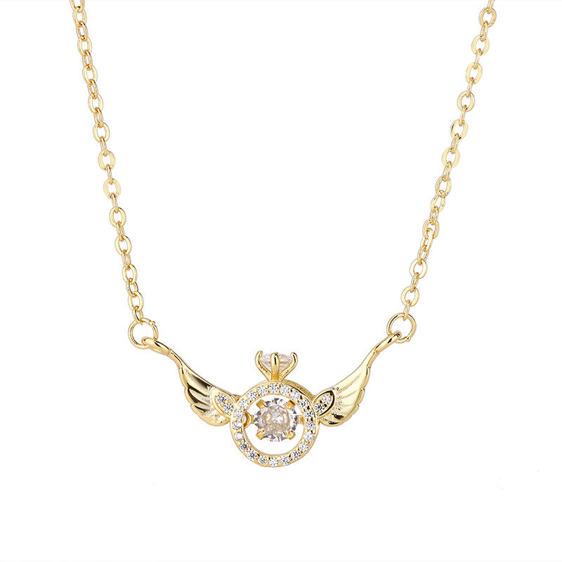This beautiful pendant necklace for women is crafted with an intricately designed and sparkling zircon circle and an angel wing charm. Let this accessory bring out your graceful beauty and confidence.
