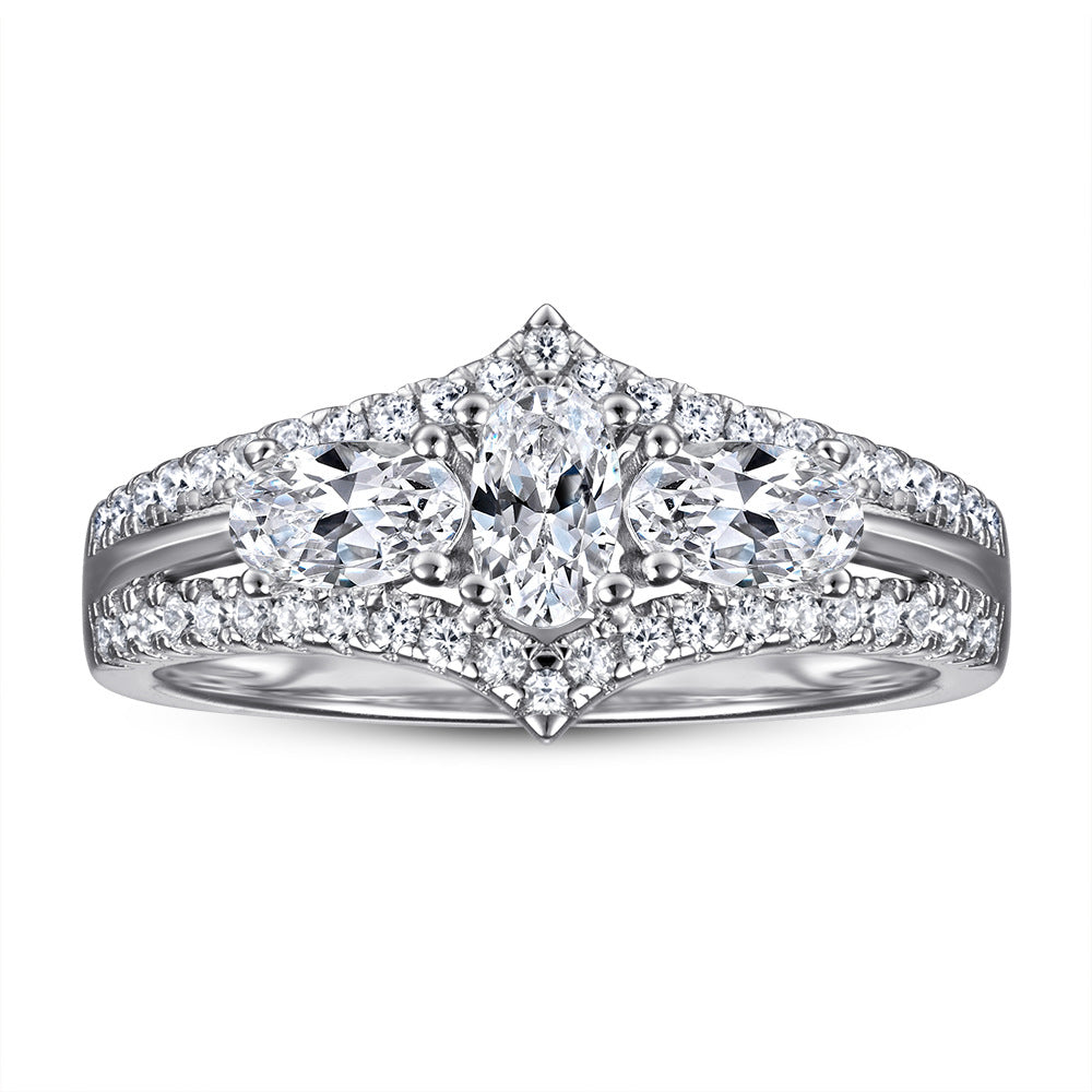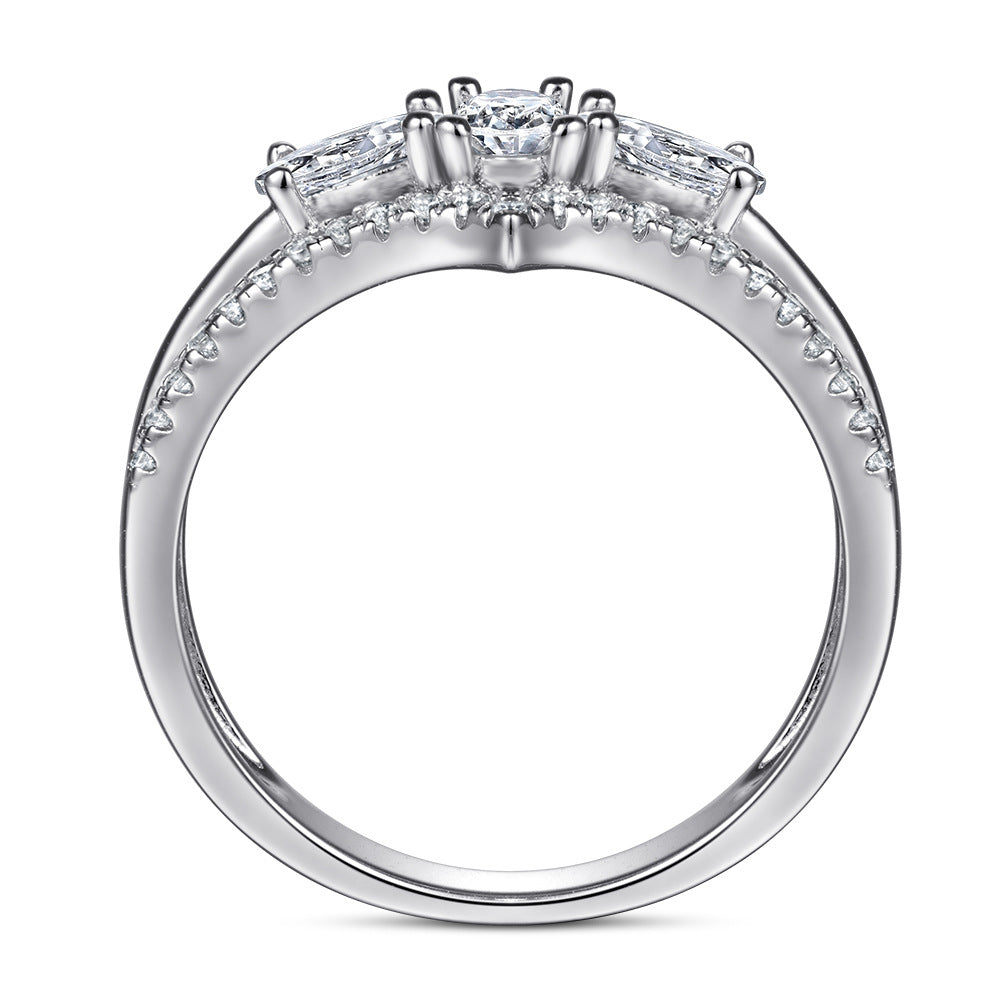 This modern split shank ring arm silver ring features three oval zircon stones for a chic and sophisticated look. Decorated with small zircon accents. this ring is sure to stand out. Its unique design makes it perfect for everyday wear.