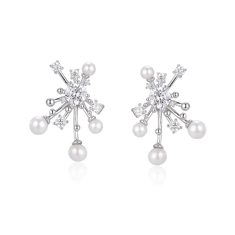 This elegant earrings for women make with sterling silver. and feature a fireworks design. They offer a classic yet modern design that will enhance any outfit. The earrings are decorated with natural pearls and sparkling zircons. perfect for special occasions and everyday wear.
