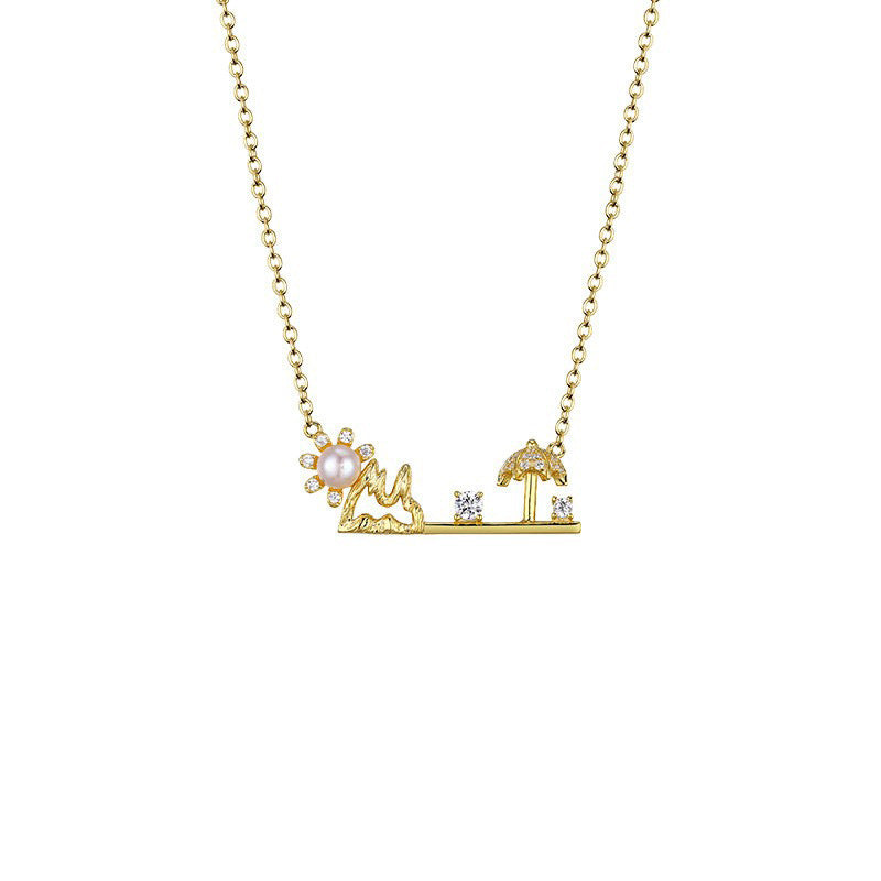 Look stylish in the sunshine with this stunning necklace for women. Features an unique Sunshine Beach Umbrella pendant and decorate with Zircon and Pearl. this necklace offers a unique and eye-catching look. Perfect for any outfit. the necklace will surely draw attention and compliments.