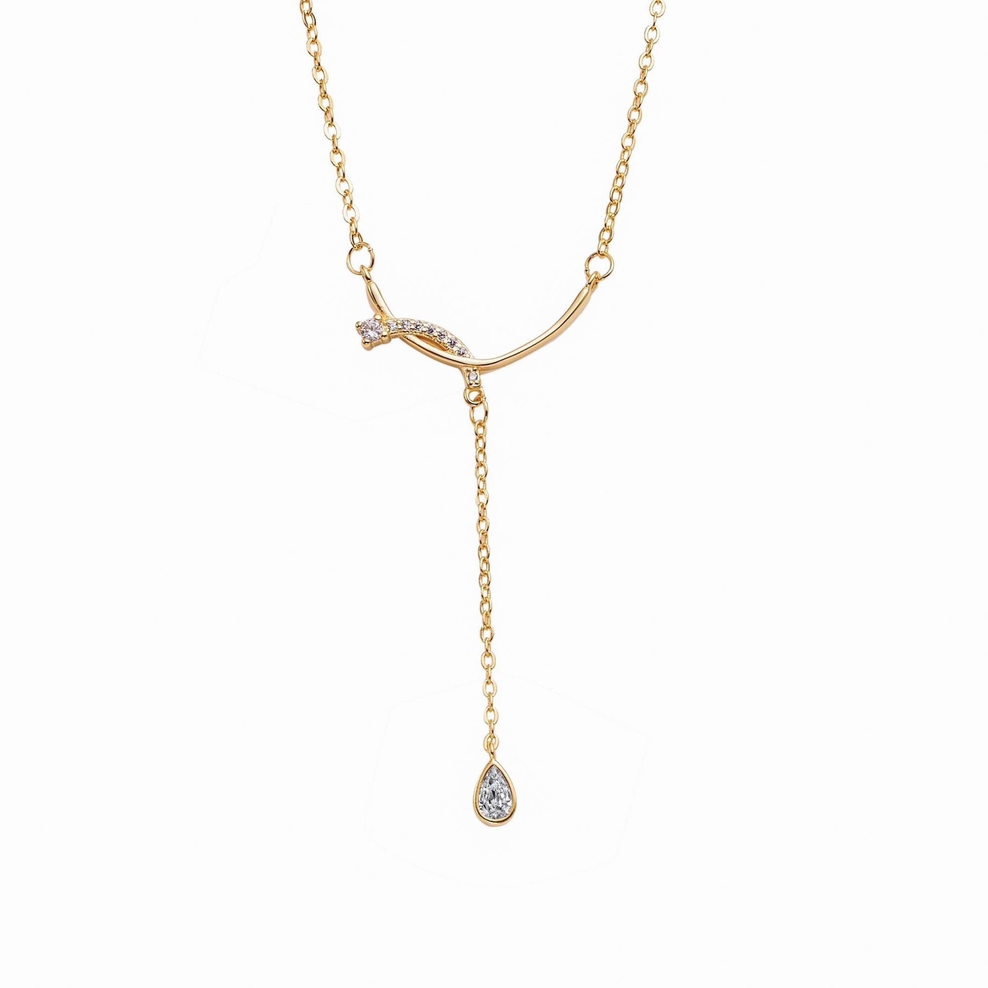 Complete your outfit with this elegant Tassels with Pear Drop Zircon Silver Necklace for Women. Featuring a smile-shape pendant and hanging Tassels with a Pear Drop Zircon. this necklace is the perfect addition to any stylish wardrobe.
