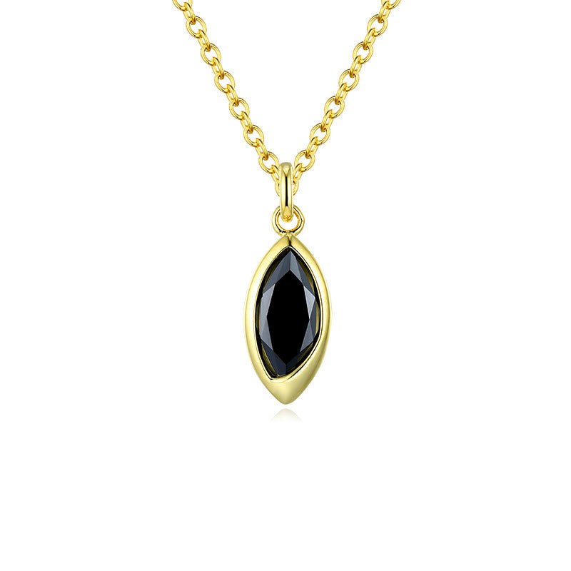 This fashionable silver necklace is perfect for adding a touch of subtle sophistication to any outfit. The marquise-shaped black obsidian pendant adds a touch of elegance. Crafted in sterling silver plated golden. this necklace pairs well with any look. whether dressed up or down.