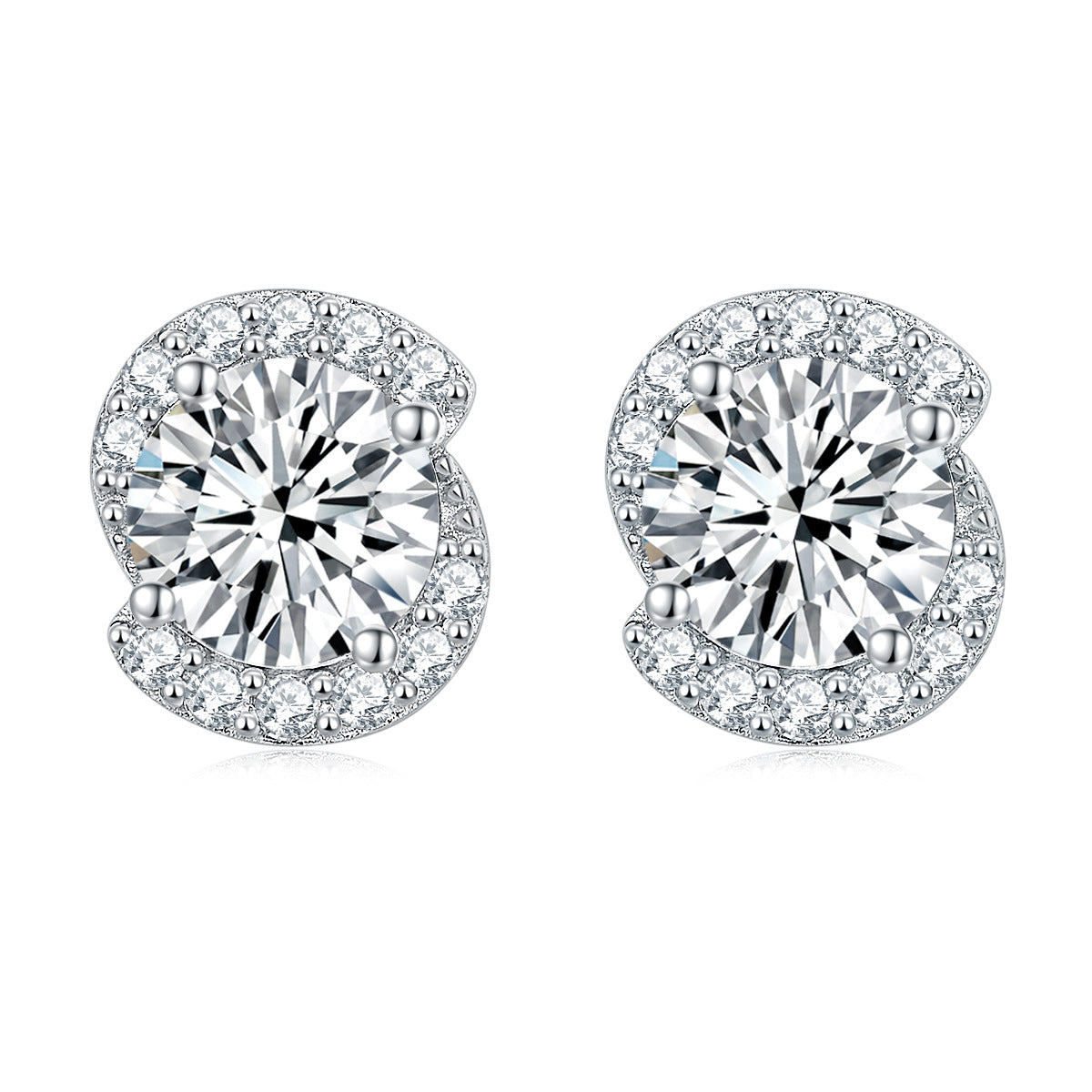 This elegant studs feature a unique rotated shape design crafted in sterling silver. finished with round zircon accents for added sparkle. With this versatile earrings. you can dress up any look.