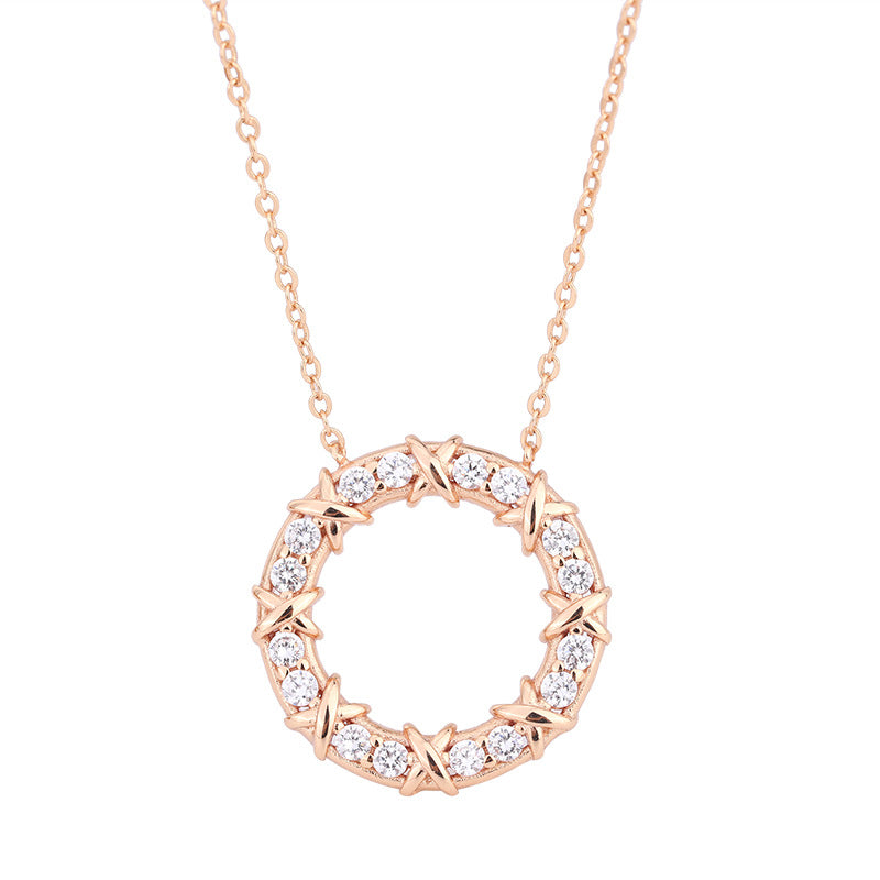This elegant Round Zircon Circle Pendant Silver Necklace will compliment any woman's wardrobe. This necklace is crafted from sterling silver and features a hollow circle pendant that is decorated with round zircons for a sparkling. eye-catching effect.
