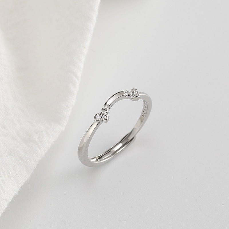 This modern Smile Design with Zircon Silver Ring is crafted with an adjustable opening. perfect for any finger size. Designed with smile shape and decorated with shining zircon stones. this ring will be a beautiful accent to your daily look.