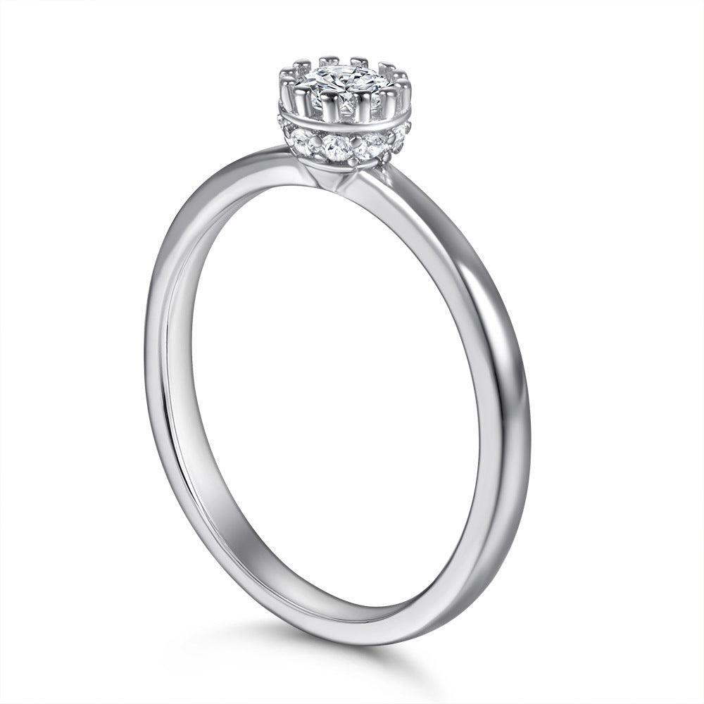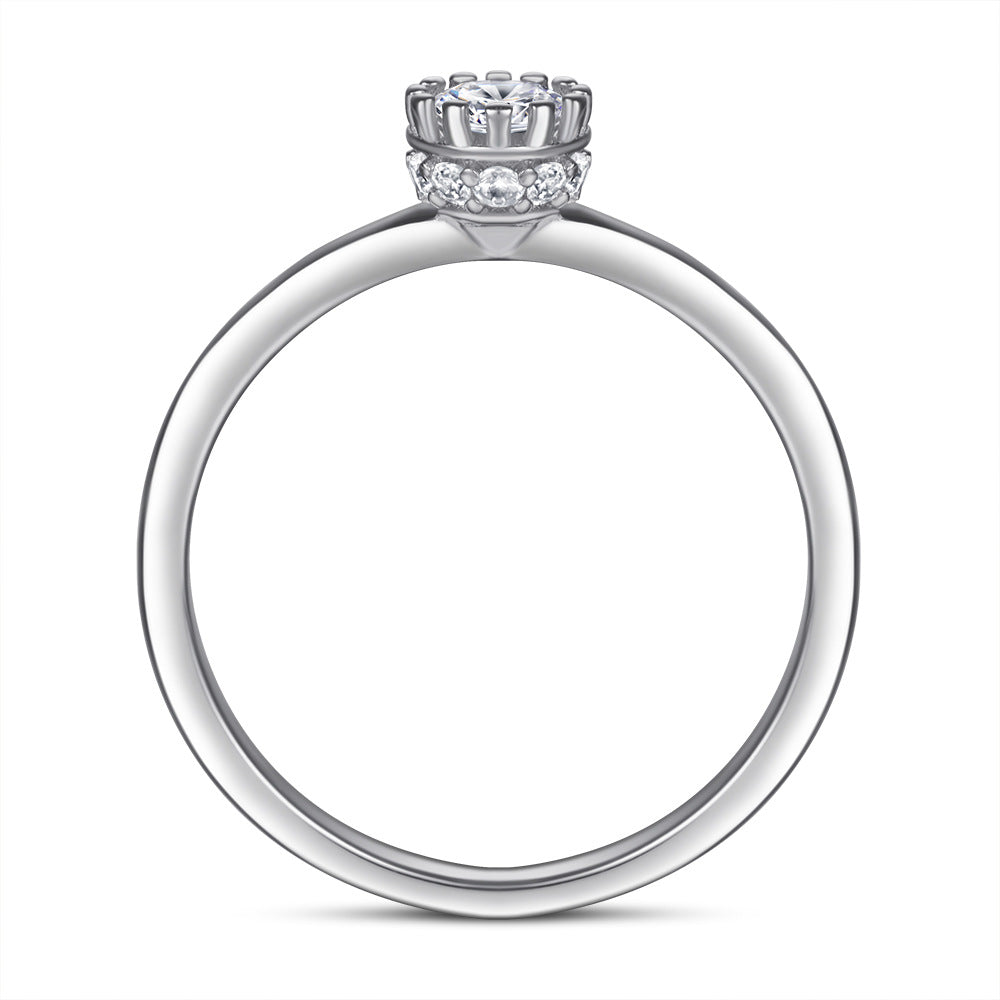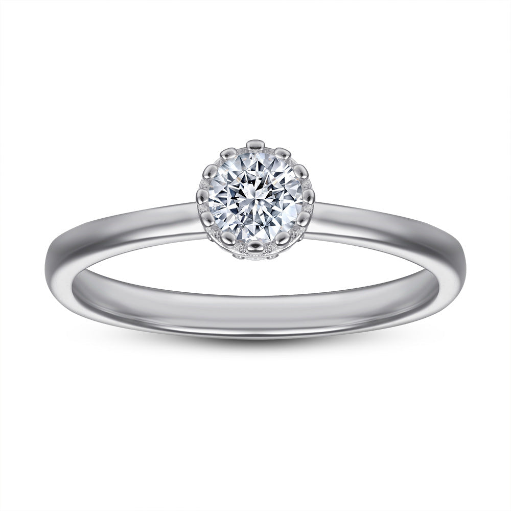 Brighten up any look with this classic solitaire ring. Round zircon holds center stage with a flower-shaped prong setting and crafted in sterling silver. This timeless design provides a simple yet chic way to elevate your style.