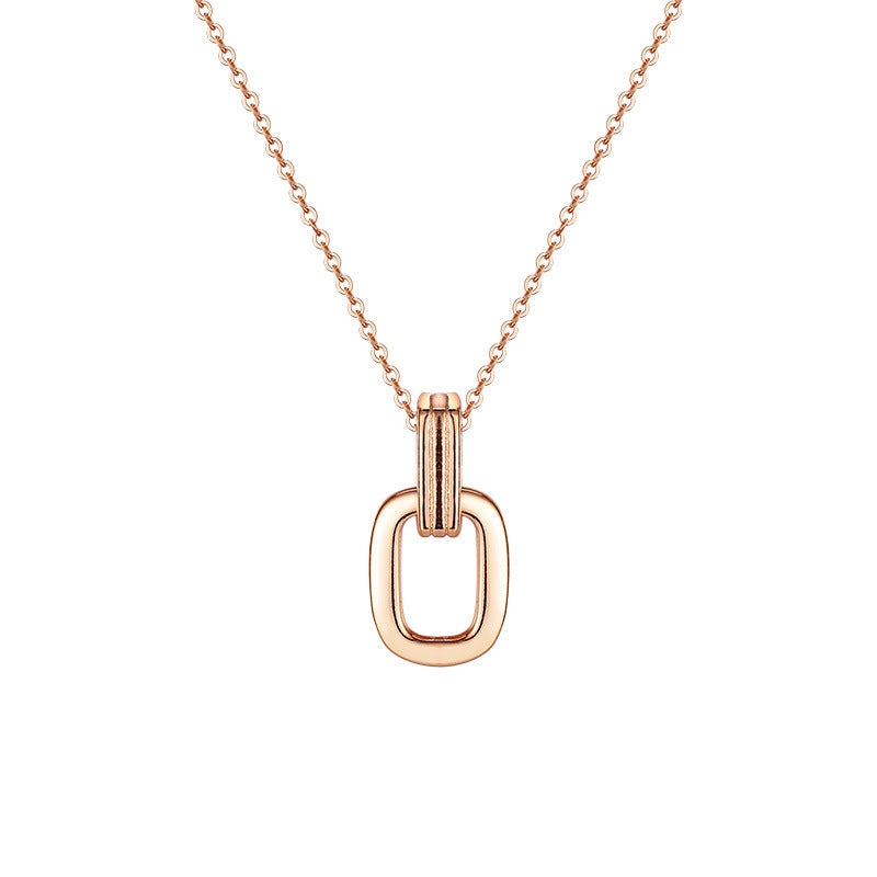 This elegant necklace features two interlocking rectangular pendants crafted from sterling silver. Its timeless design is sure to make a beautiful addition to any jewelry collection.
